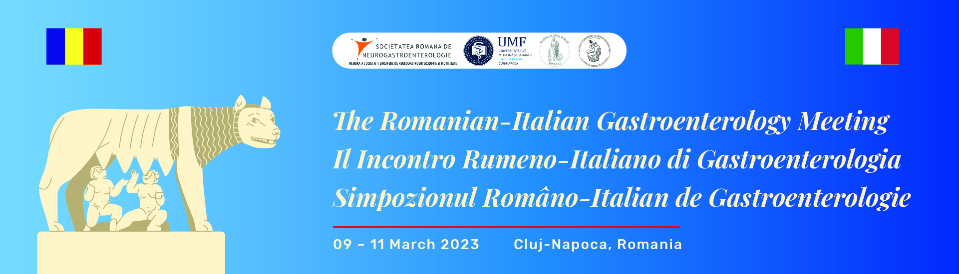 We have the pleasure of inviting you at a new edition of the Romanian-Italian Gastroenterology Meeting 2023 which will take place from 09th to 11th of March, at Grand Hotel Napoca, in the beautiful city of Transylvania – Cluj-Napoca. The event is organized under the aegis of the Romanian Society for Neurogastroenterology (SRNG) and with the support of the University of Medicine and Pharmacy Cluj.